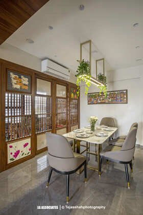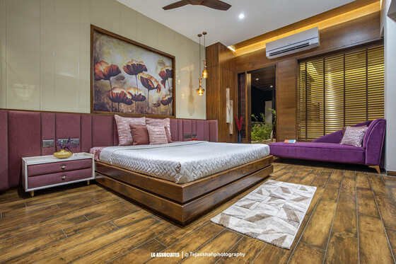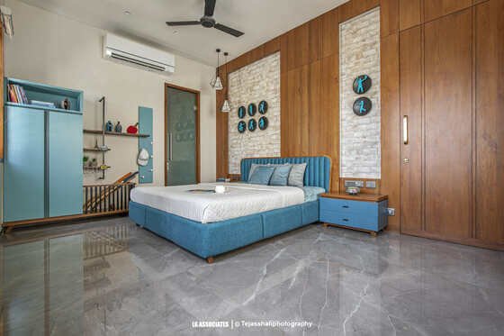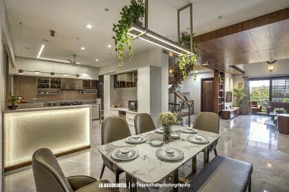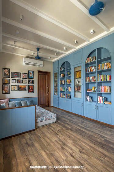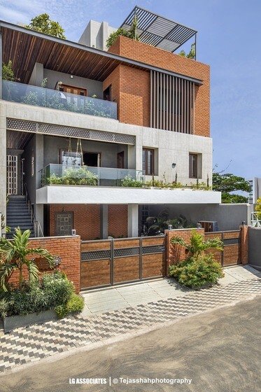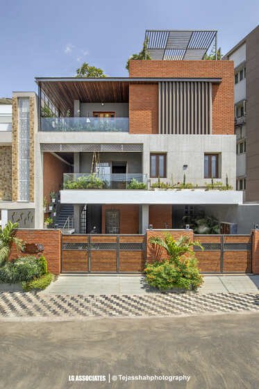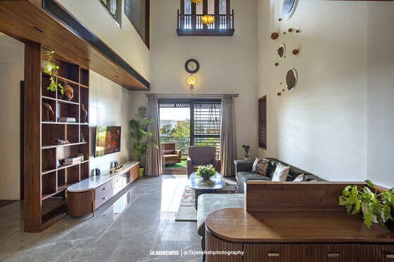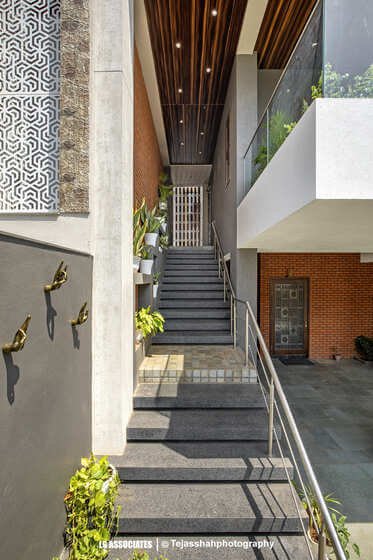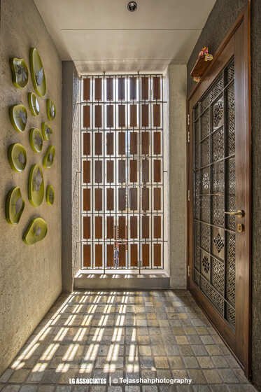 - This peaceful and elegant home in Bhavnagar is designed for a doctor’s family, where comfort, style, and nature come together beautifully. The house uses soft colours, warm wooden finishes, and indoor plants to create a calming and welcoming space. Large windows bring in natural light and connect the indoors with green balcony views, making every corner feel fresh and alive.